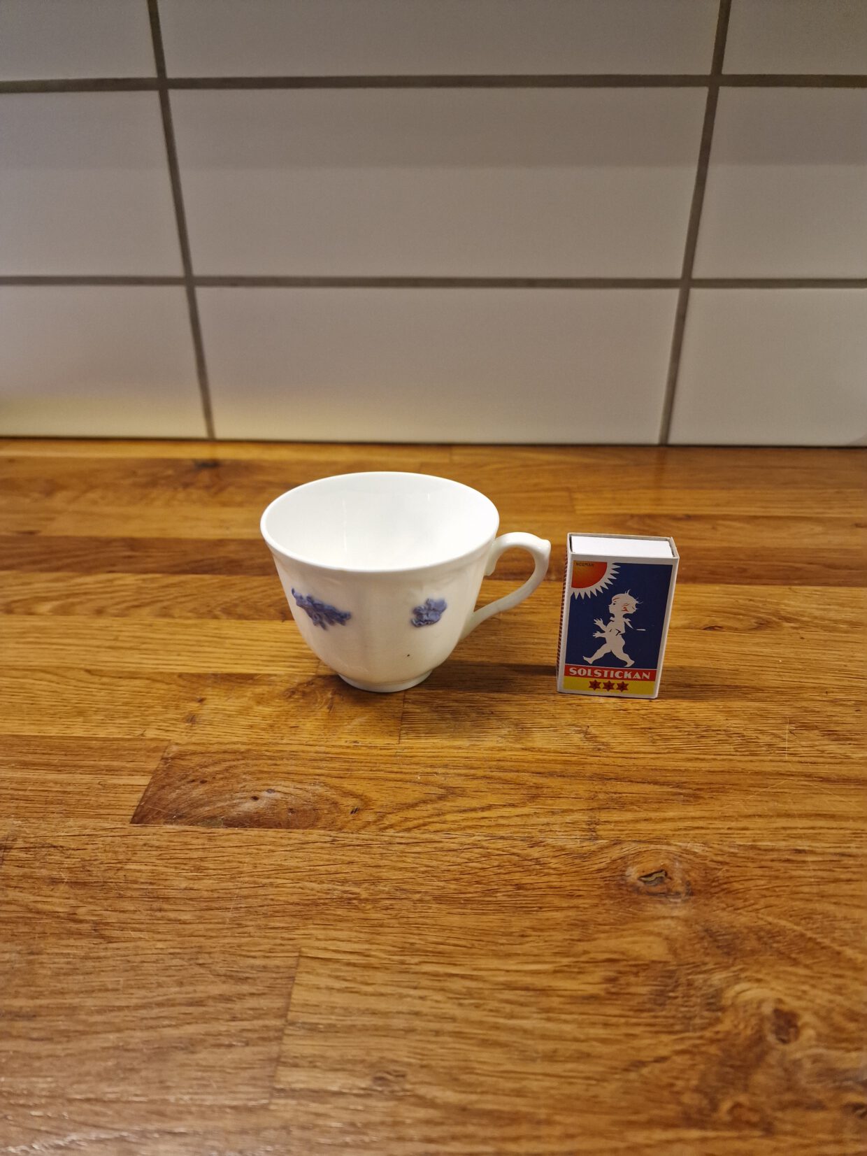 2917) ) Gustavsberg ovankopp (ej fat) Blå Blom 30 kr, ljus i färgen.