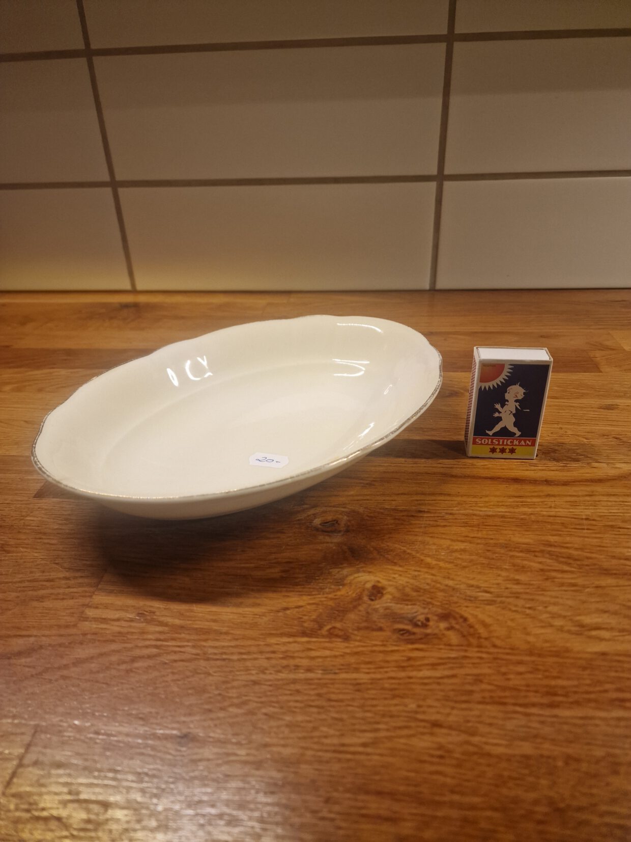 5507) Rörstrand fat 20 kr, sliten gulddekor.